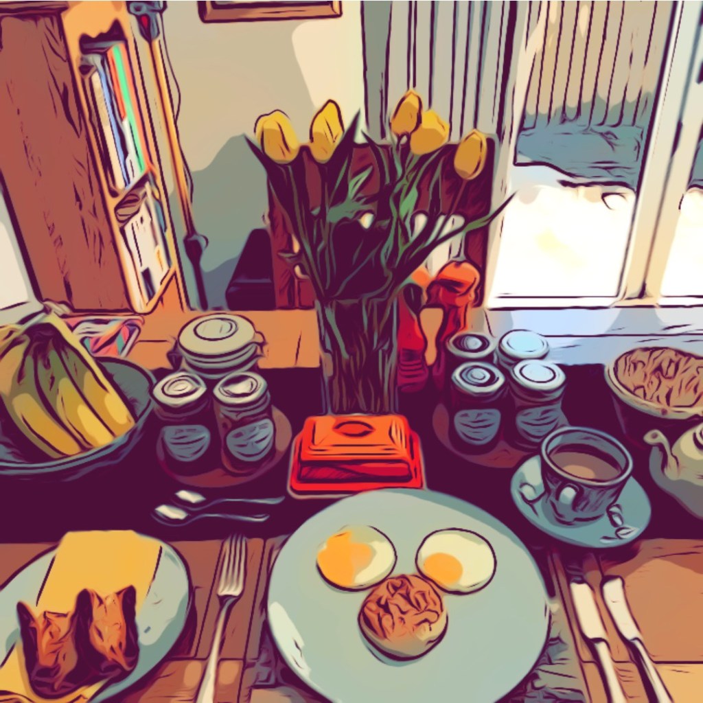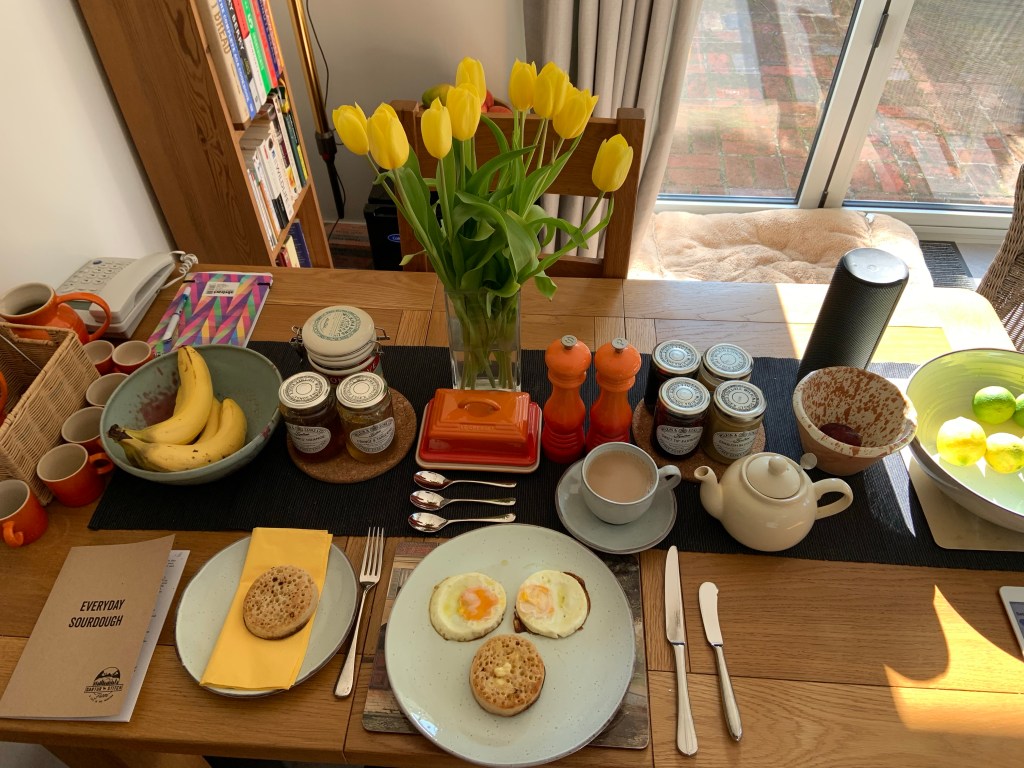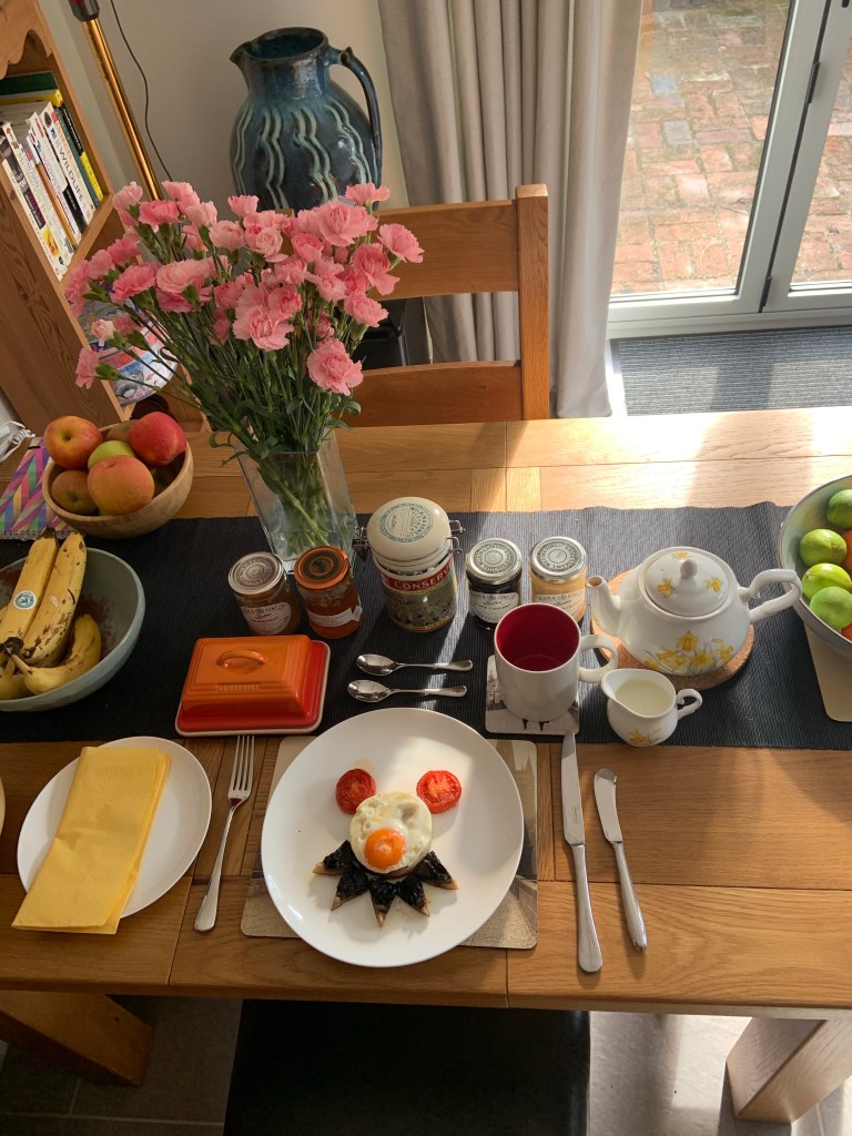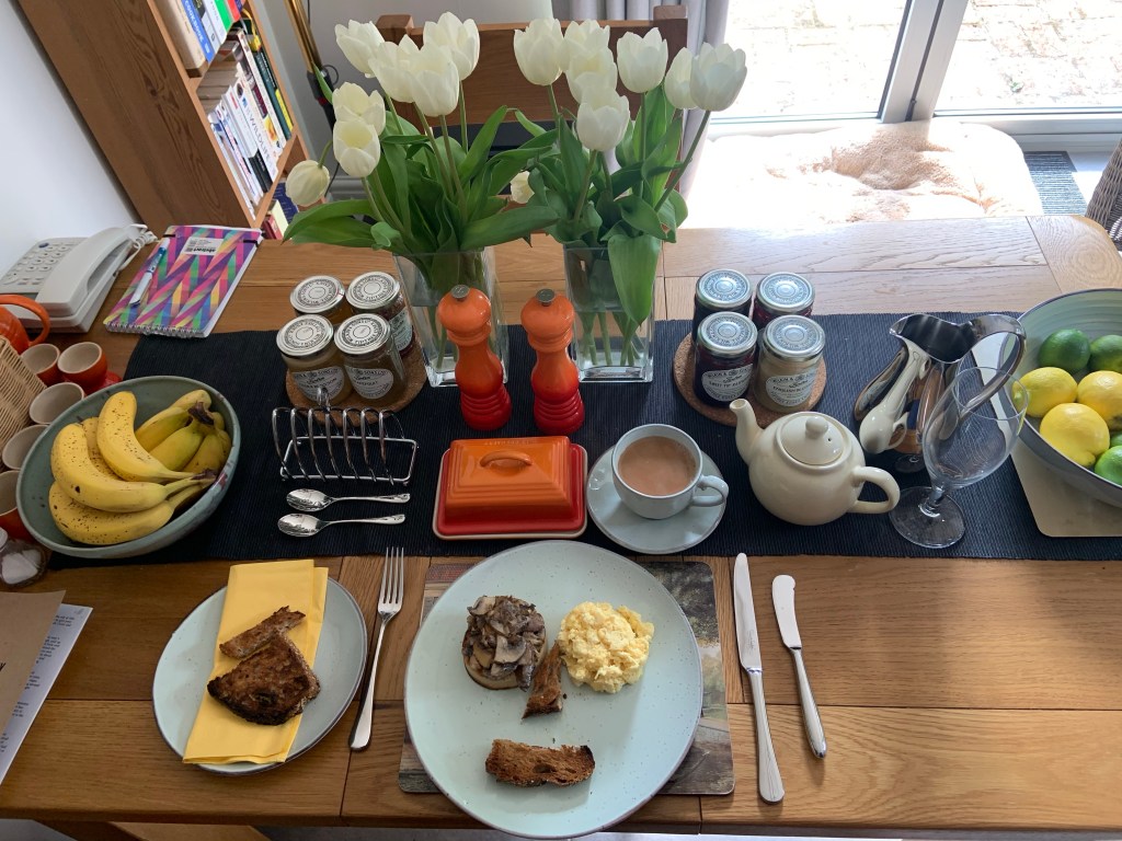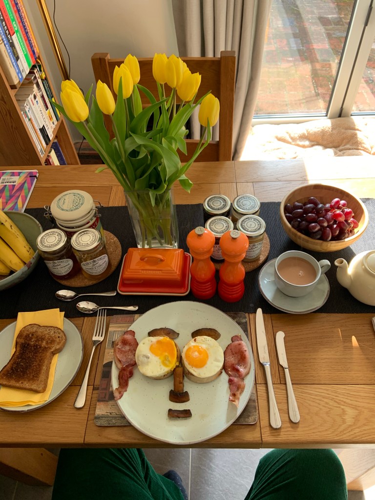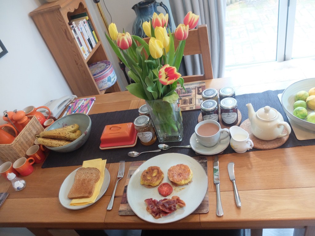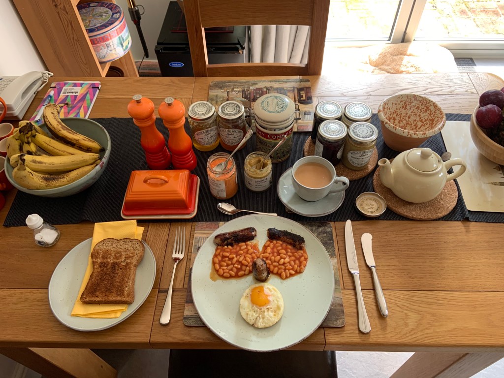 Posted on April 14, 2020June 7, 2020Confinement Breakfasts “Breakfast”, said the Saint, laconically, “Two boiled eggs, toast and a pint of coffee.” (Alias the Saint)