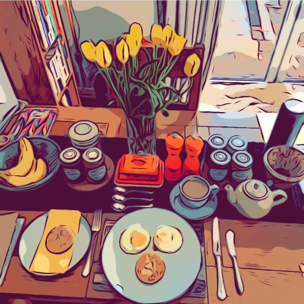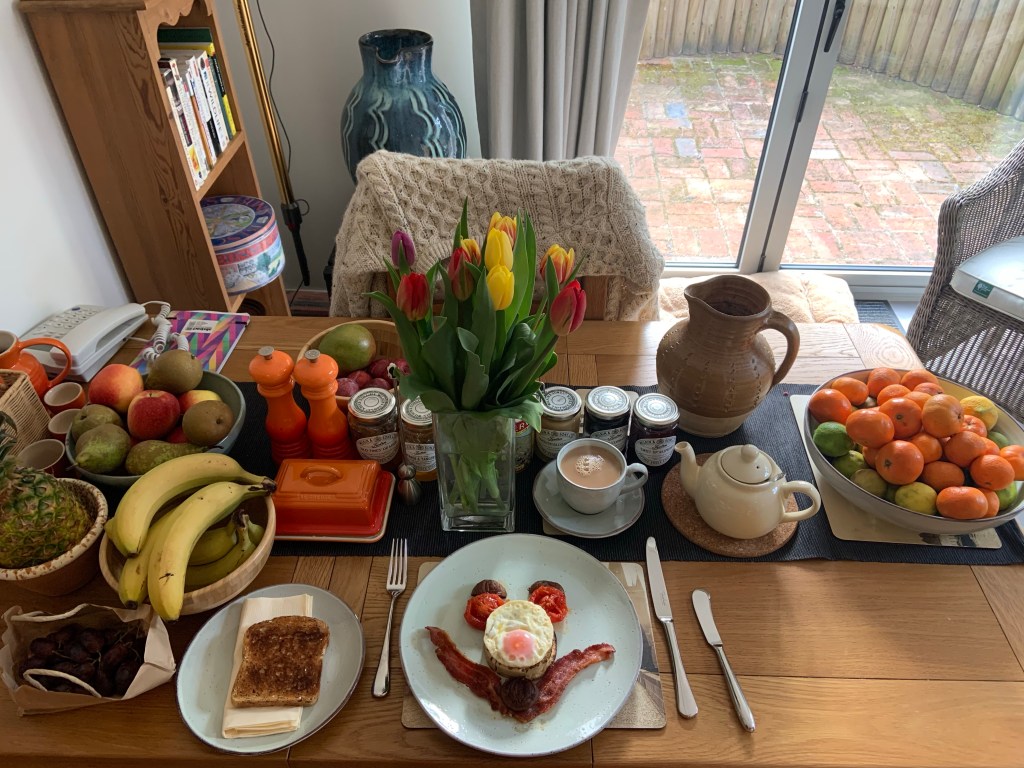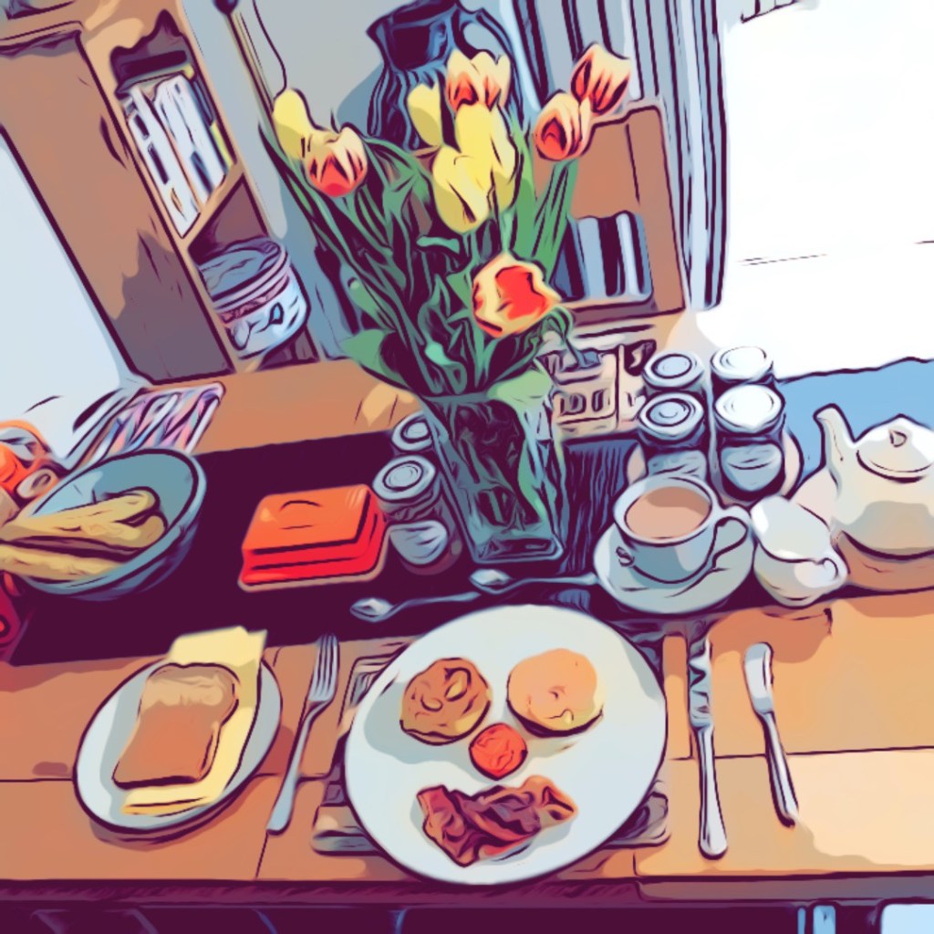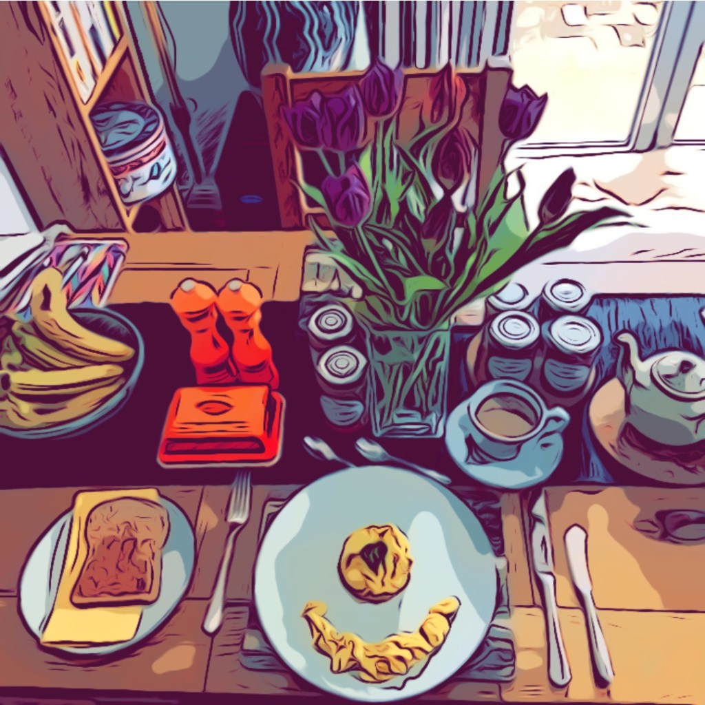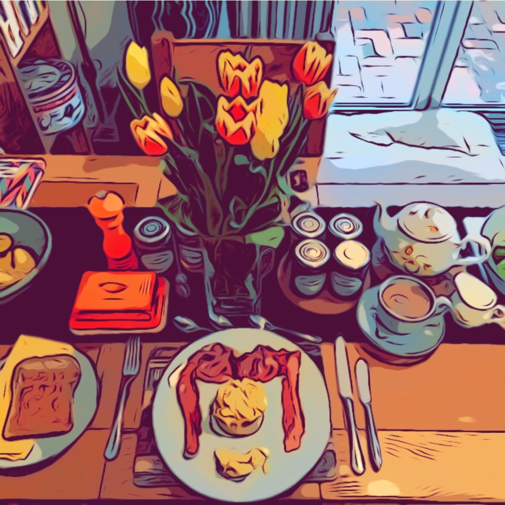 Posted on April 14, 2020June 7, 2020Confinement Breakfasts “Breakfast”, said the Saint, laconically, “Two boiled eggs, toast and a pint of coffee.” (Alias the Saint)