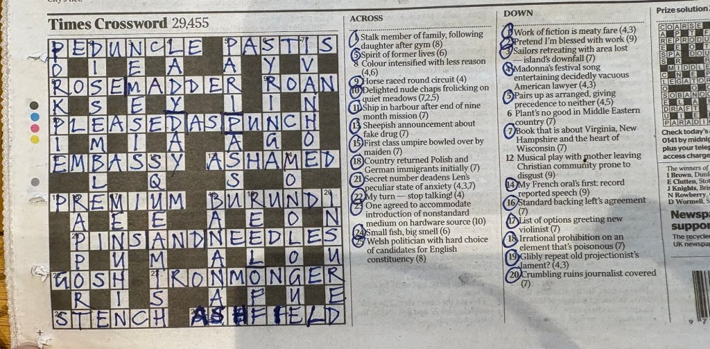 I couldn’t get charioteer initially, but having left it for a while, I found it came to me immediately on my picking the paper up again. LJ