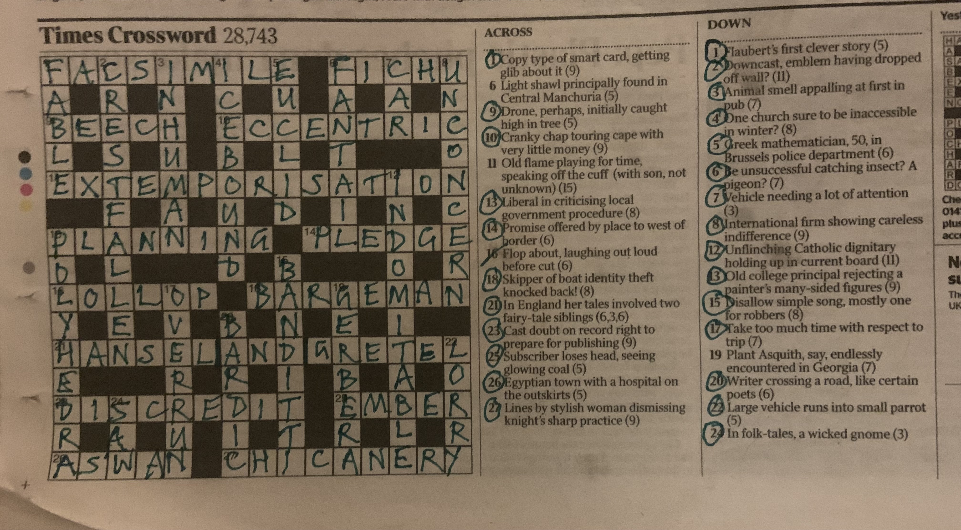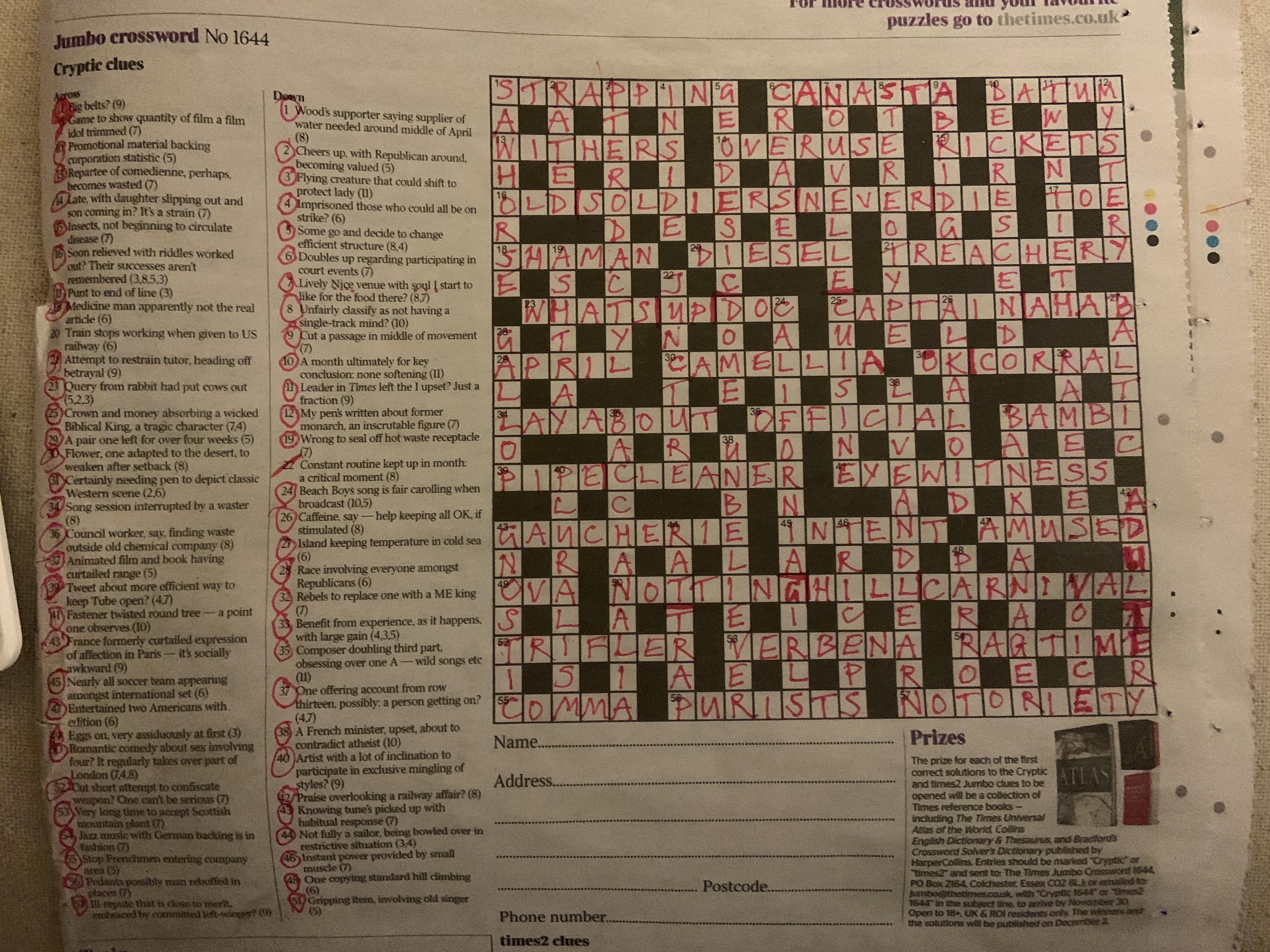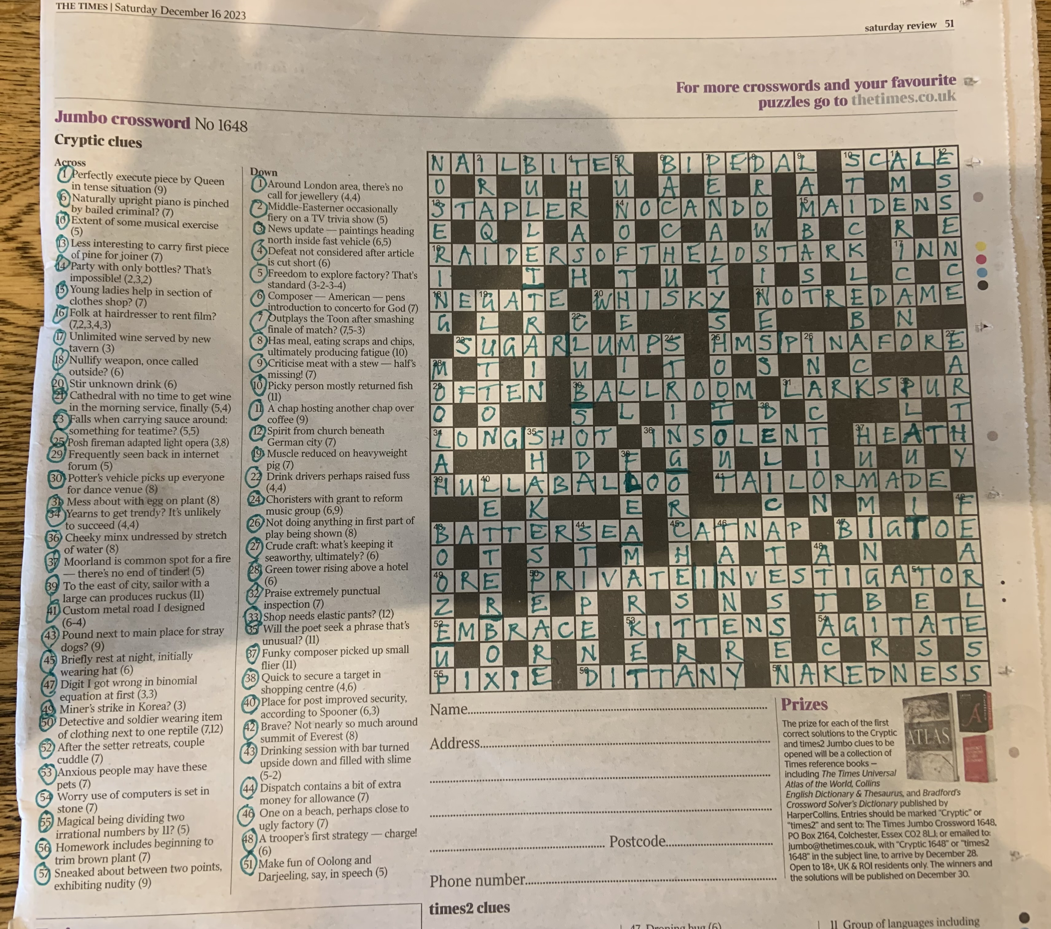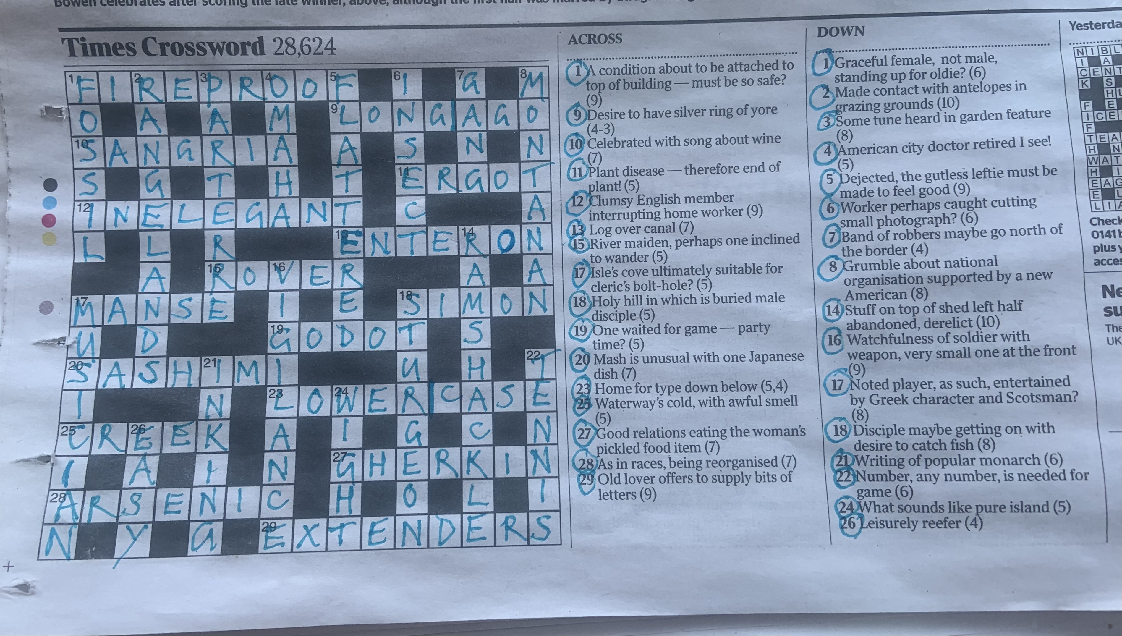 Posted on December 17, 2023A pleasant Jumbo, with some doubts about the spelling of 39 across by the compiler.