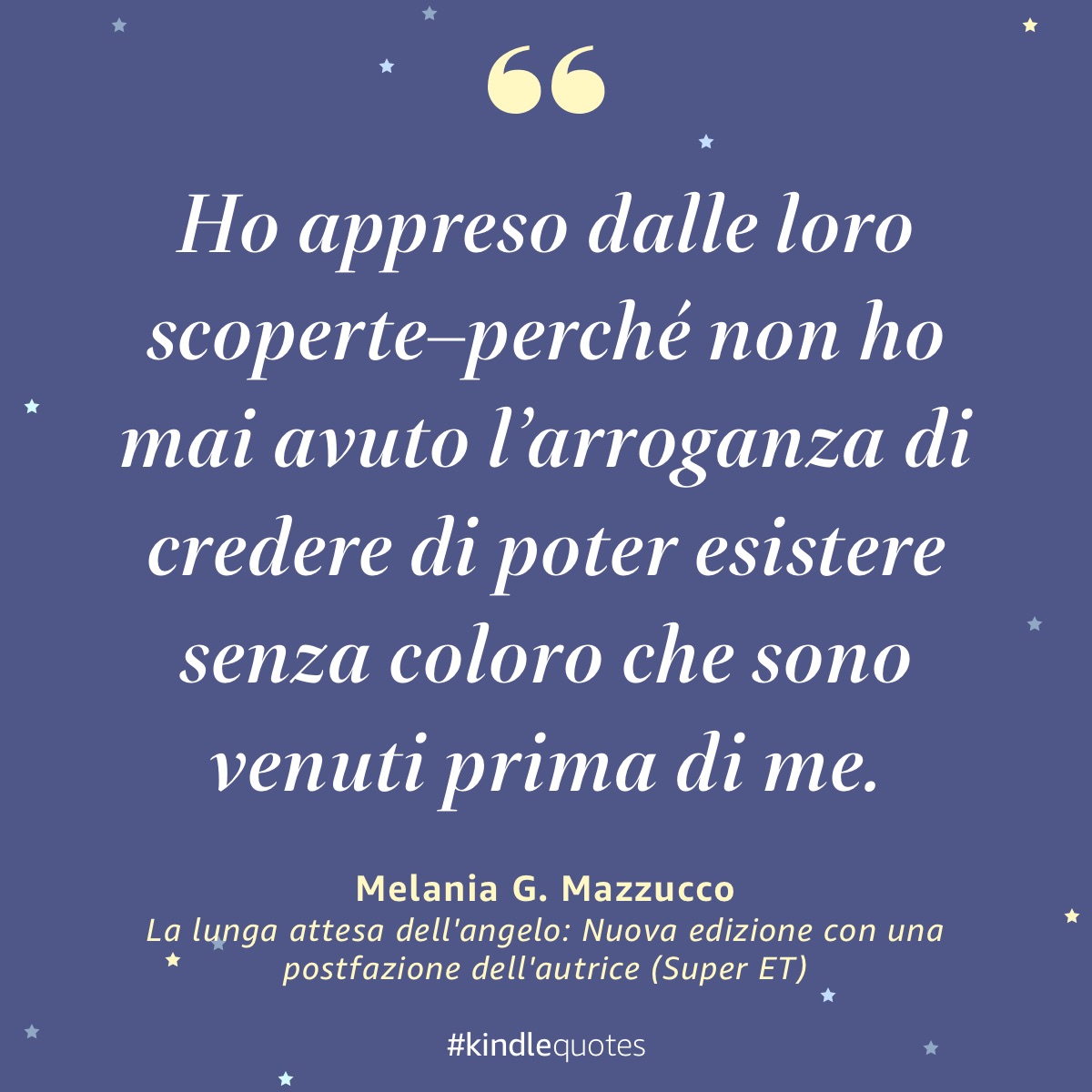 “Sono diventato arido come un sughero secco – tutti gli umori caldi dei miei affetti si sono prosciugati in me. La fonte è asciutta, la miniera vuota.” (from “La lunga attesa dell’angelo: Nuova edizione con una postfazione dell’autrice (Super ET) (Italian Edition)” by “Melania G. Mazzucco”)