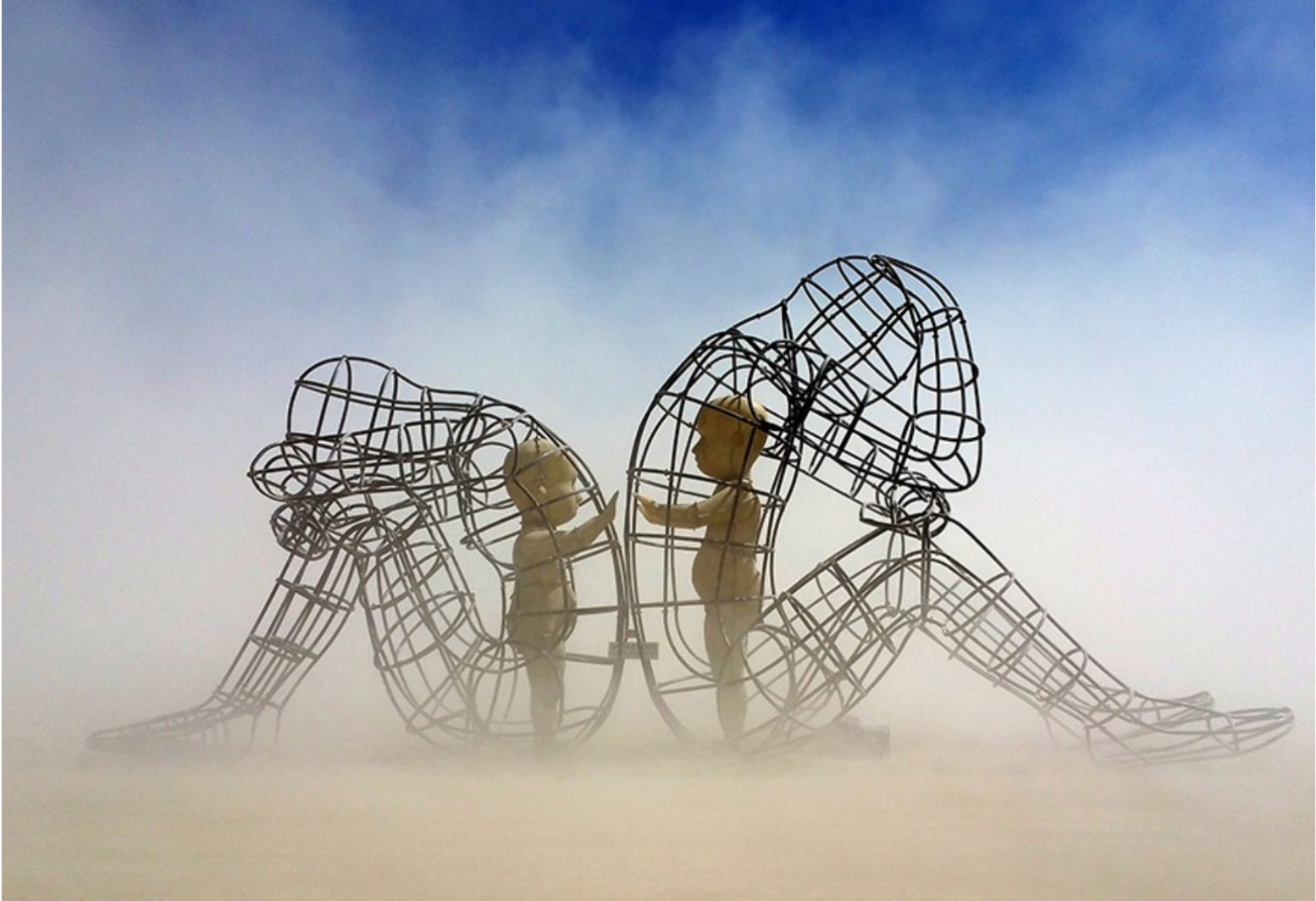“Les voyageurs”, œuvre de Bruno Catalano, symbolisant le vide au sillage des départs. La situation me paraît convenir à perfection au sujet de la sculpture.